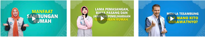 Video pendek berdurasi singkat sekitar 2 menit ini menginformasikan tentang manfaat Sambungan Rumah, informasi teknis tentang pemasangan pipa Sambungan Rumah, dan bagaimana cara merawat pipa Sambungan Rumah. Video ini menargetkan pemilik rumah yang sudah akan dipasang pipa Sambungan Rumah dengan cara disebarkan melalui pesan Whatsapp yang dikirimkan oleh Ketua RT/RW.