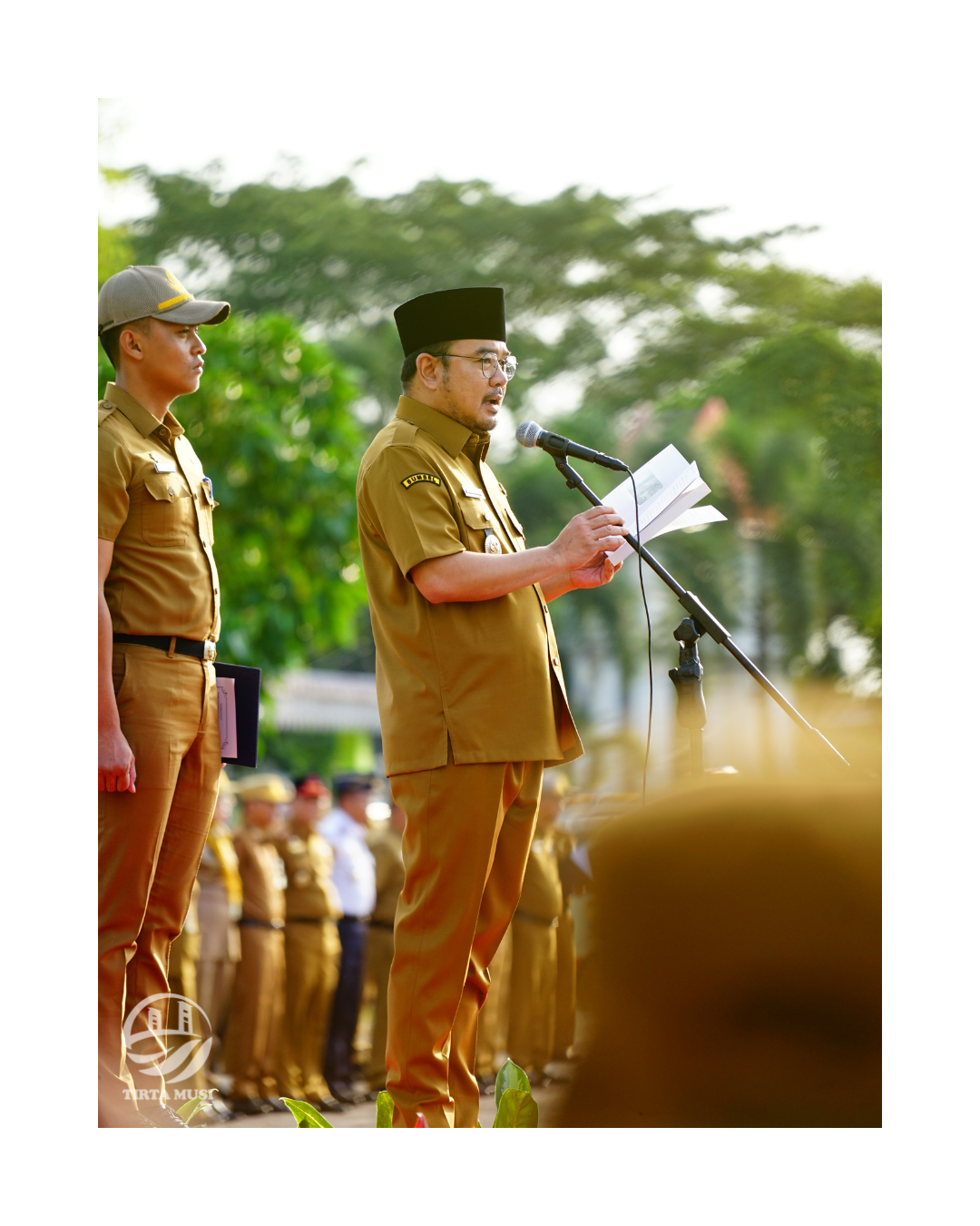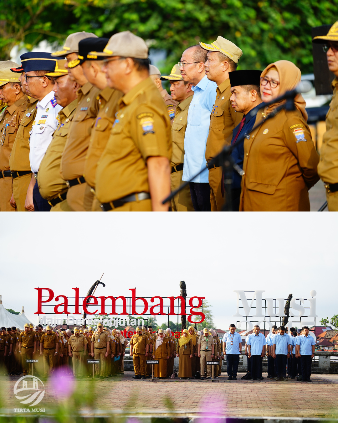 Direktur Utama, Andi Wijaya Adani beserta karyawan Perumda Tirta Musi mengikuti kegiatan Apel Pagi Bersama OPD Pemerintah Kota Palembang yang di pimpin langsung oleh Wakil Wali Kota Palembang, Prima Salam di Benteng Kuto Besak Kota Palembang.