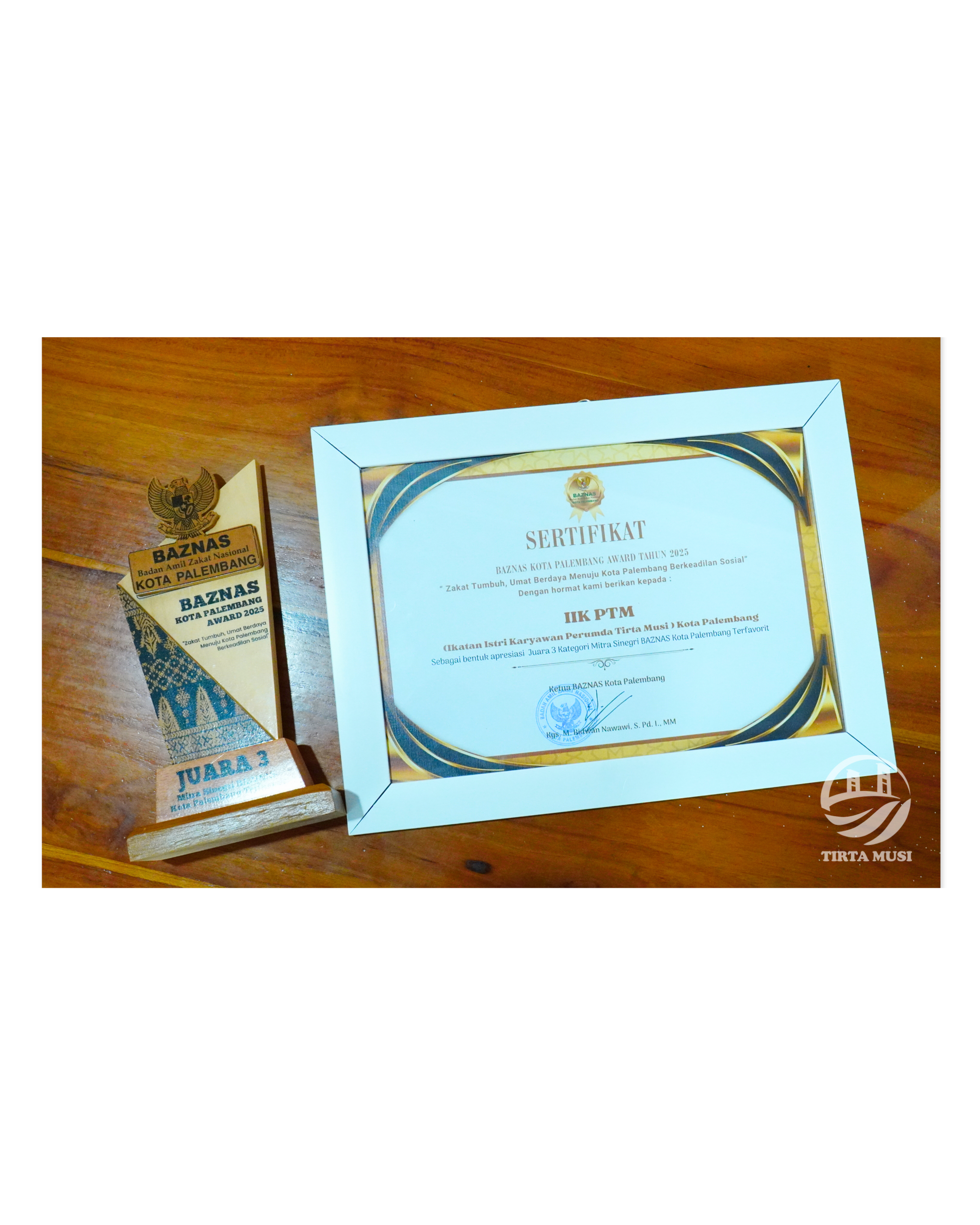 Selain itu, Ikatan Istri Karyawan (IIK) Perumda Tirta Musi Palembang juga berhasil meraih penghargaan Juara 3 Kategori Mitra Sinergi BAZNAS Kota Palembang Terfavorit. Penghargaan ini diberikan sebagai pengakuan atas peran aktif IIK Perumda Tirta Musi dalam menjalin sinergi, kepedulian sosial, serta dukungan terhadap berbagai kegiatan kemanusiaan yang diinisiasi oleh BAZNAS Kota Palembang.