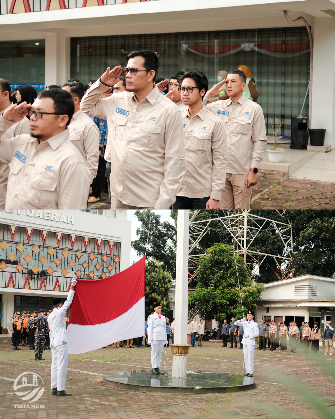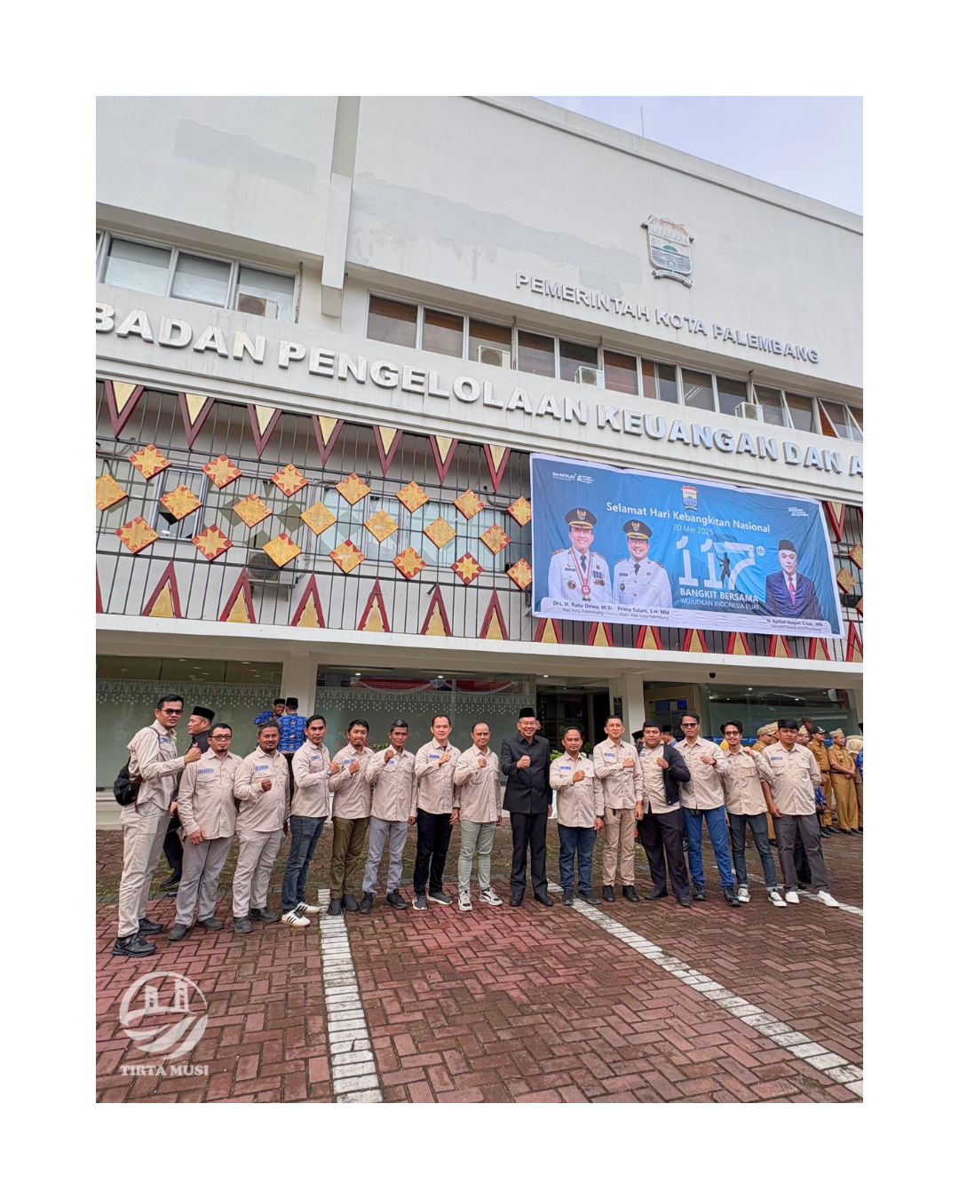 Direktur Utama Perumda Tirta Musi Palembang, Andi Wijaya Adani beserta jajaran karyawan turut serta dalam kegiatan upacara peringatan Hari Kebangkitan Nasional ke-117 yang dipimpin langsung oleh Wali Kota Palembang, H. Ratu Dewa di halaman parkir Sekretariat Daerah Kota Palembang.