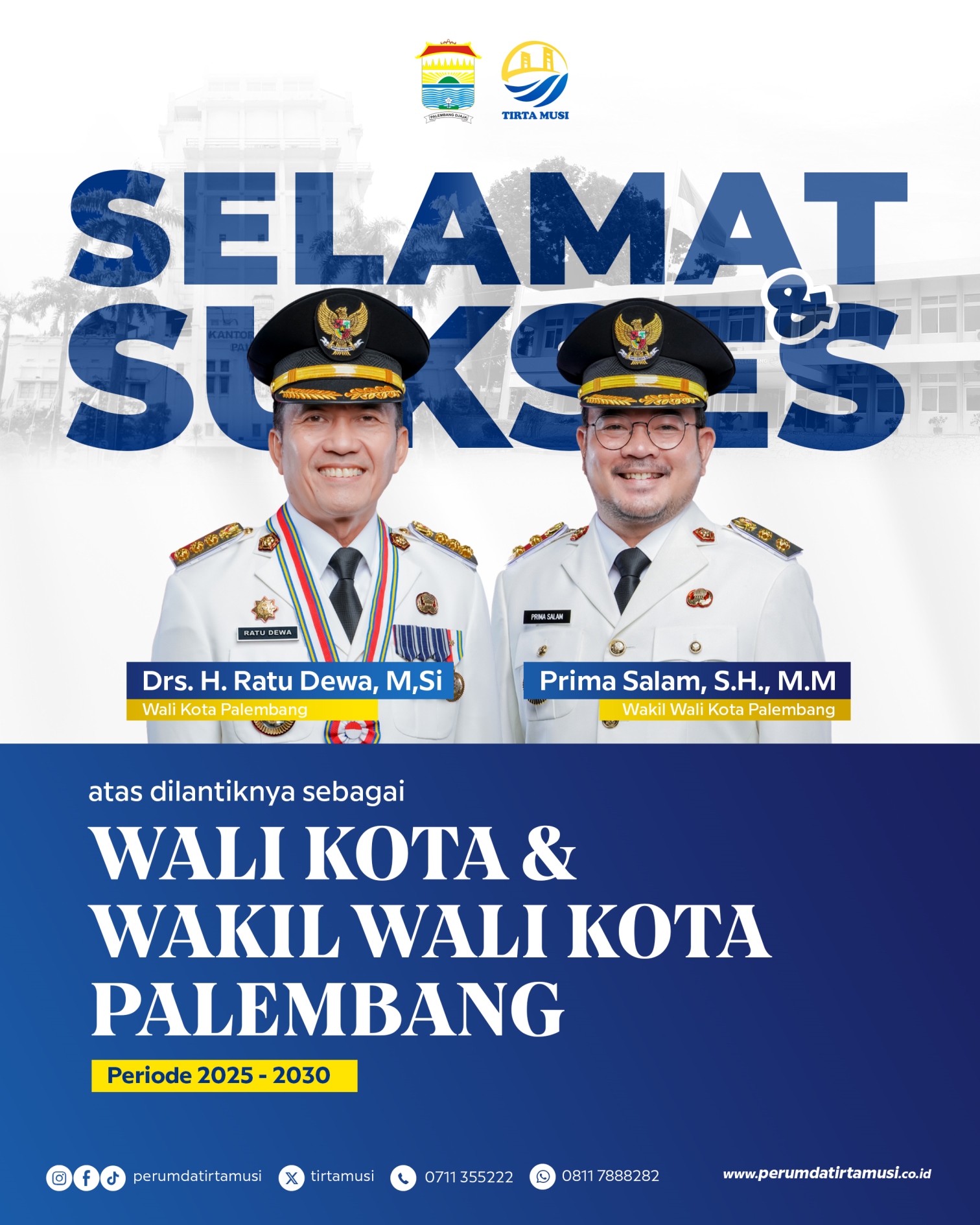 Drs. H. Ratu Dewa, M.Si, dan Prima Salam, S.H., M.H, sebagai Wali Kota dan Wakil Wali Kota Palembang periode Tahun 2025-2030